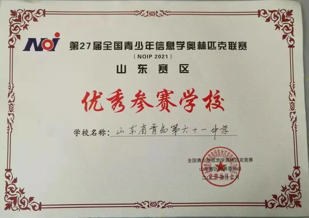 時光荏苒,歲月如梭,轉眼間2021年即將過去。2021年是不平凡的一年,我們迎來中國共產黨建黨100周年、黨的十九屆六中全會勝利召開。中國共產黨帶領全國各族人民取得了疫情防控和經濟建設的一個又一個勝利。青島61中在李滄區教育和體育局的指導下,順勢而為,取得了學校教育教學工作的一個接一個佳績。2021年中考,學校各項成績數據持續高位發展。學校獲得“第27屆全國青少年信息學奧林匹克聯賽山東賽區優秀參賽學校”、“青島教育踐行十個一優秀實踐學校”等20余項省、市、區級榮譽稱號。