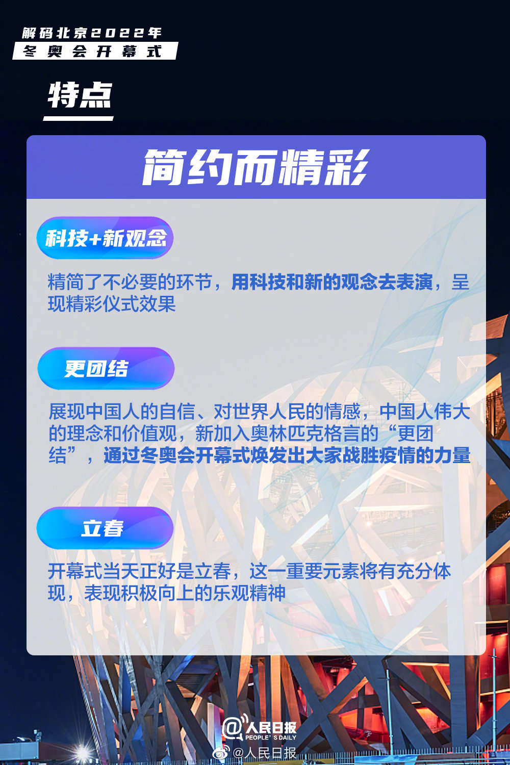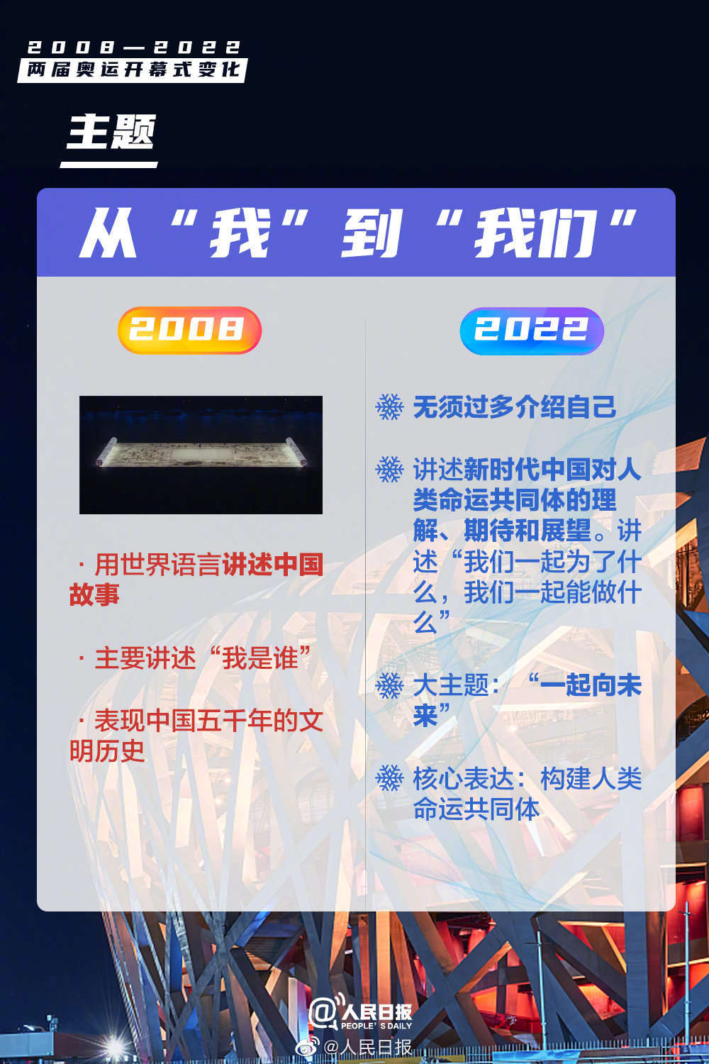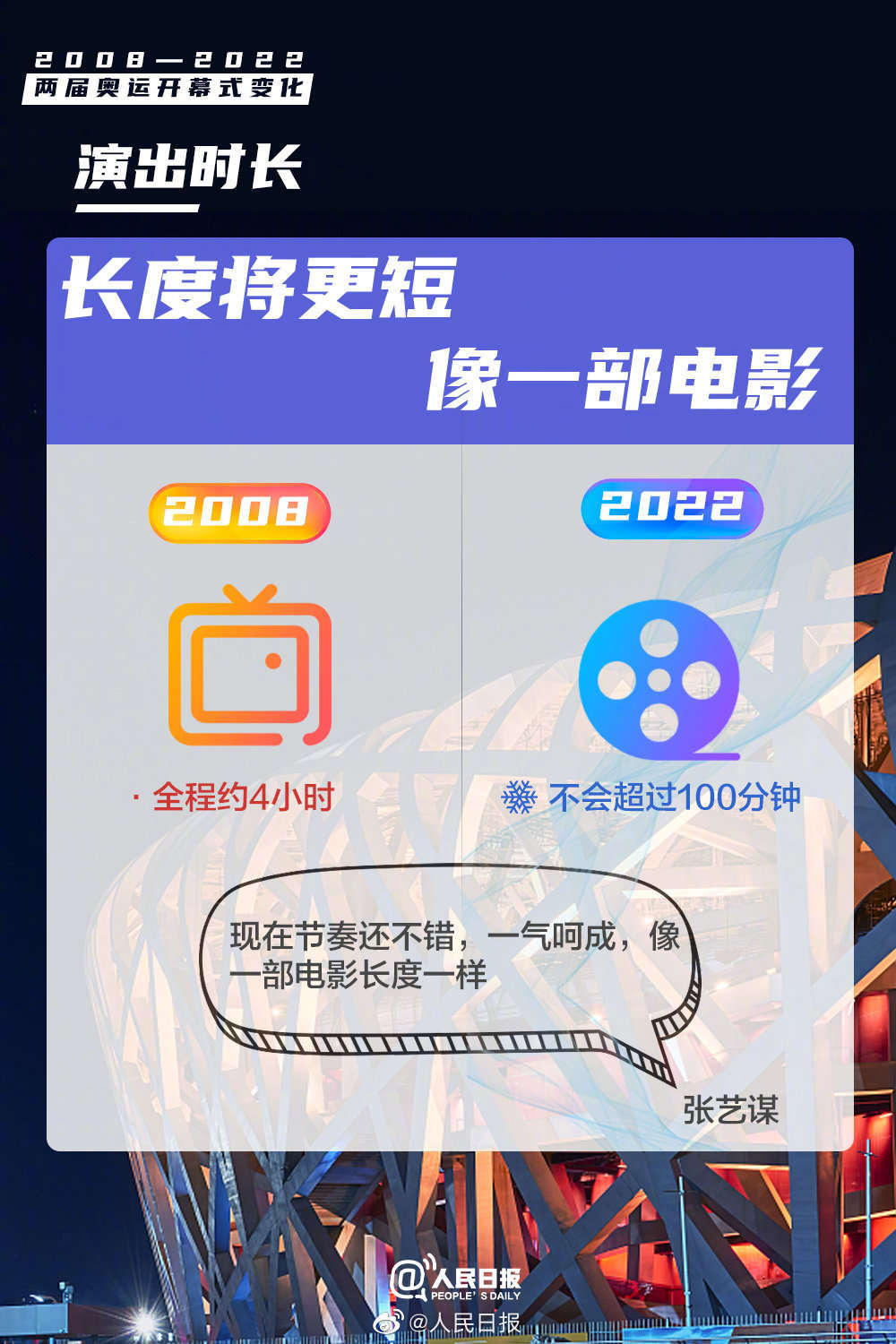 2008,北京夏奧會開幕式展示了燦爛的中華文化;2022,北京冬奧會開幕式時長將像電影一樣,簡約精彩浪漫,凝聚全世界戰(zhàn)勝疫情、共向未來的力量。從“我”到“我們”,從“講歷史”到“向未來”,這是雙奧之城的自信:中國人辦的奧運開幕式不會讓你失望!