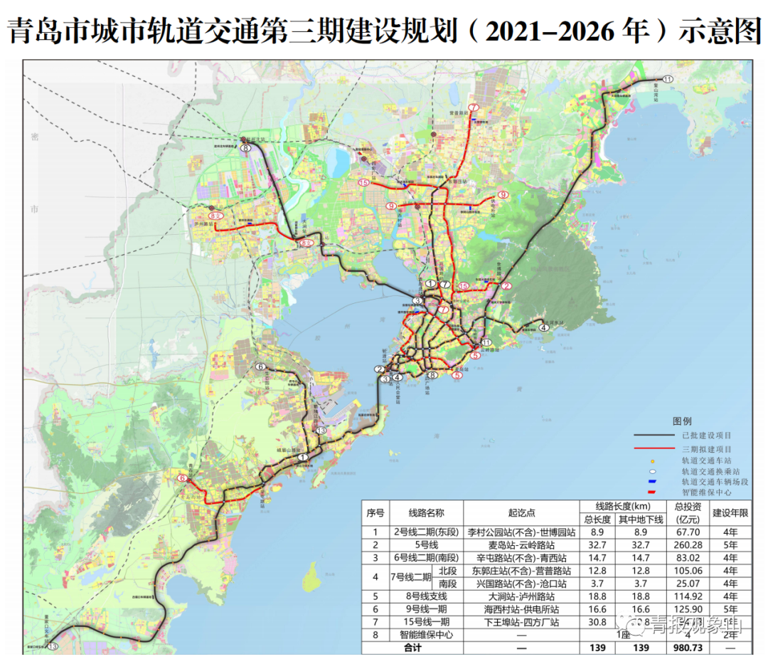 1月10日,青島地鐵官網發布6號線二期工程、9號線一期工程、15號線一期工程、8號線支線工程《環境影響報告書》征求意見稿公告。據了解,青島地鐵三期建設線路共包括7個項目,其中2號線二期、5號線、7號線二期于2021年12月30日開工,其余4個項目,即6號線二期、8號線支線、9號線一期和15號線一期計劃將分兩批于今年上半年陸續開建。隨著環評公示,這4條地鐵線路的總體走向和站點設置也隨之明確。根據公告,報告書文本內容是基于現階段設計方案的環評成果,下階段將在聽取公眾、專家等各方面意見的基礎上,進一步修改完善。
