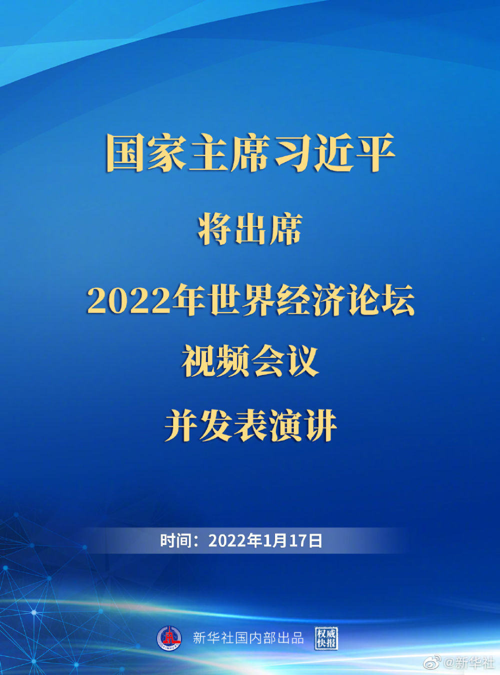 【權(quán)威快報 | 習(xí)近平將出席2022年世界經(jīng)濟(jì)論壇視頻會議】外交部發(fā)言人華春瑩1月14日宣布:應(yīng)世界經(jīng)濟(jì)論壇創(chuàng)始人兼執(zhí)行主席施瓦布邀請,國家主席習(xí)近平將于1月17日在北京出席2022年世界經(jīng)濟(jì)論壇視頻會議并發(fā)表演講。