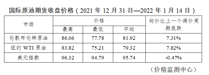 據(jù)國家發(fā)改委價(jià)格監(jiān)測中心監(jiān)測,本輪成品油調(diào)價(jià)周期內(nèi)(2021年12月31日—2022年1月14日)國際油價(jià)大幅上漲。平均來看,倫敦布倫特、紐約WTI油價(jià)比上輪調(diào)價(jià)周期上漲7.57%。受此影響,國內(nèi)汽油、柴油零售價(jià)隨之上調(diào)。