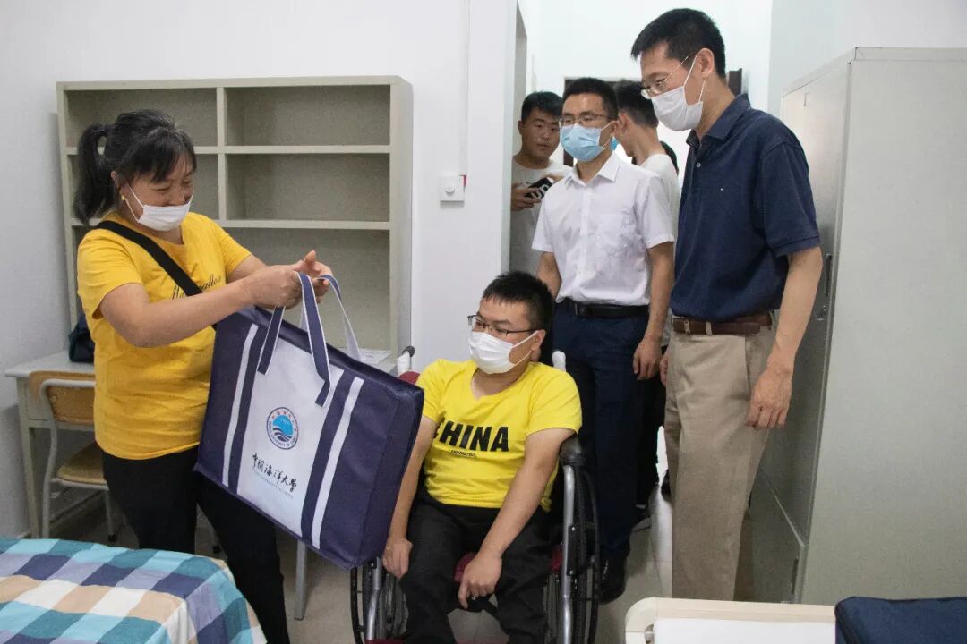 除此之外,中國海洋大學還在溫銀東所在宿舍樓的門口增加了無障礙設施,并贈送了生活用品。