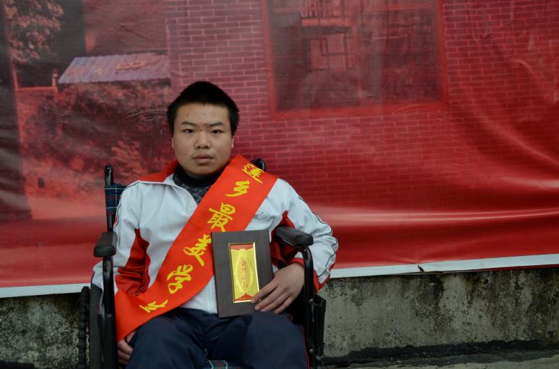 溫銀東,來自江西省石城縣,因出生時有腫瘤壓迫了神經,導致下半身完全沒有感知能力,經過手術也未能治愈。但他樂觀積極,始終沒有氣餒,他說:“既然命運已經這樣安排了,那就讓我自己‘走’在改變命運的路上。”