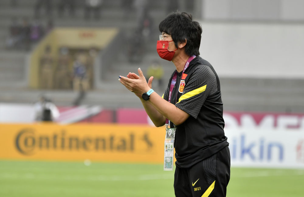 1月23日,中國隊主教練水慶霞在場邊指揮。新華社發