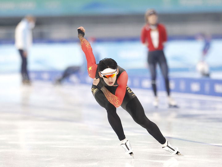 1月30日,中國(guó)速滑隊(duì)隊(duì)員王浩田在訓(xùn)練中。新華社記者 武巍 攝