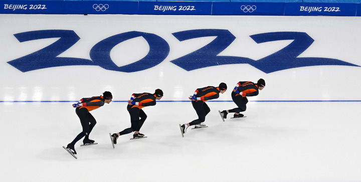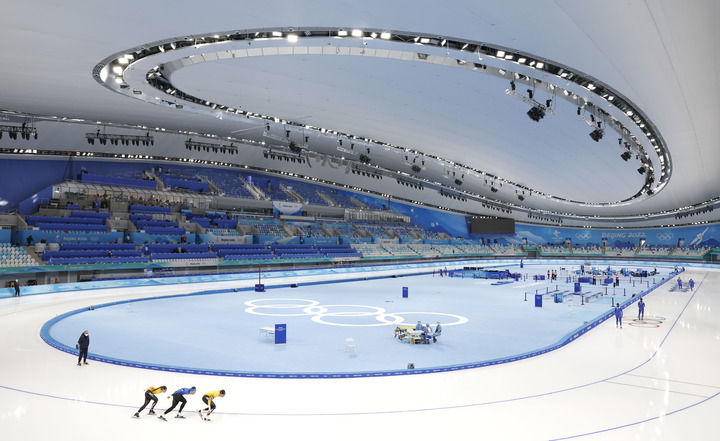 1月28日,荷蘭速度滑冰運動員在“冰絲帶”訓練。新華社記者王建威攝