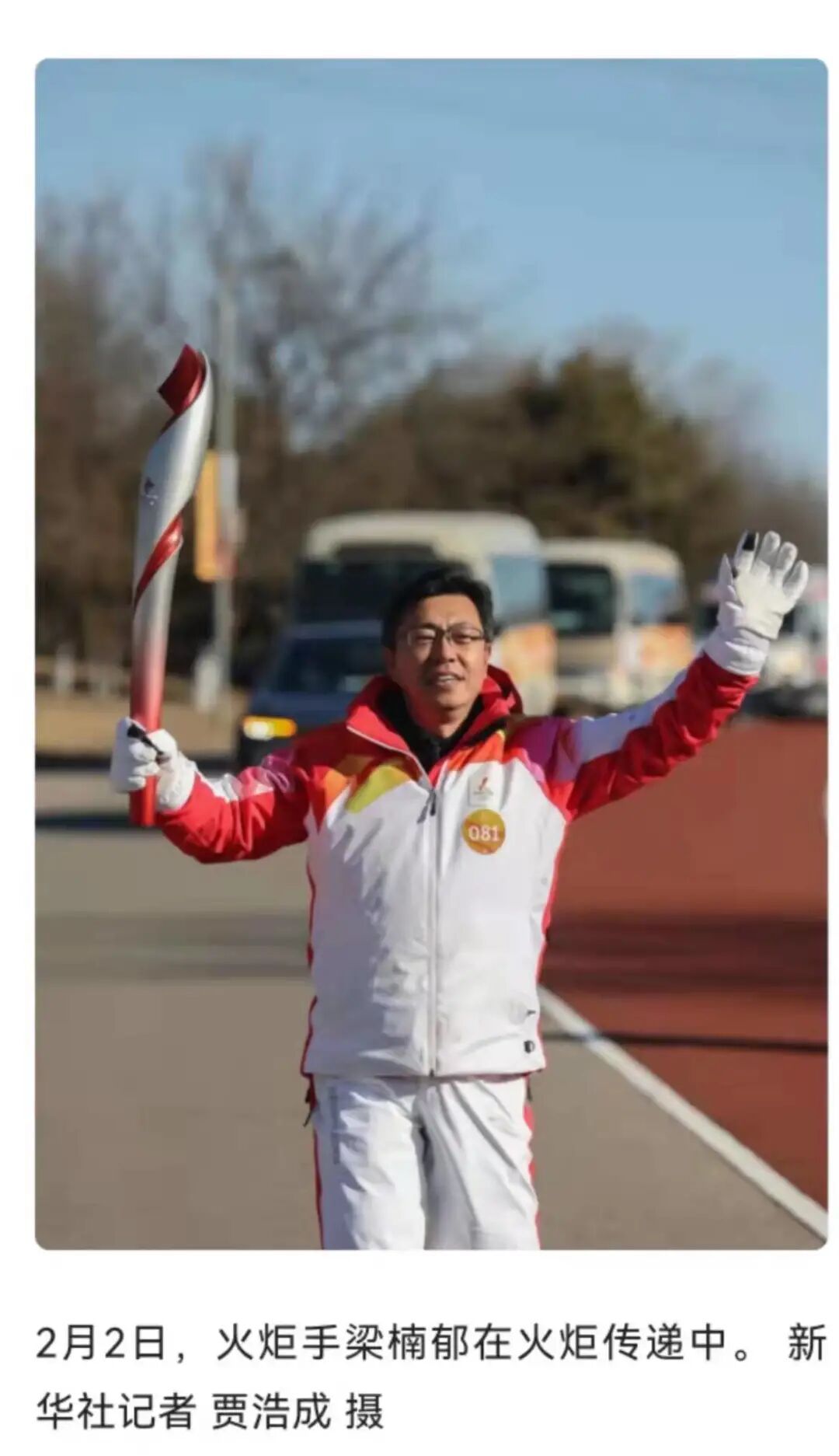 “感恩組織推薦我為冬奧火炬手。感恩母校對我的培養、教育、支持和鼓勵。請母校放心,我會初心如炬,使命如磐!我將舉起火炬,挺起胸膛,向著五環旗幟勁跑,向著中華民族偉大復興的中國夢勁跑。”