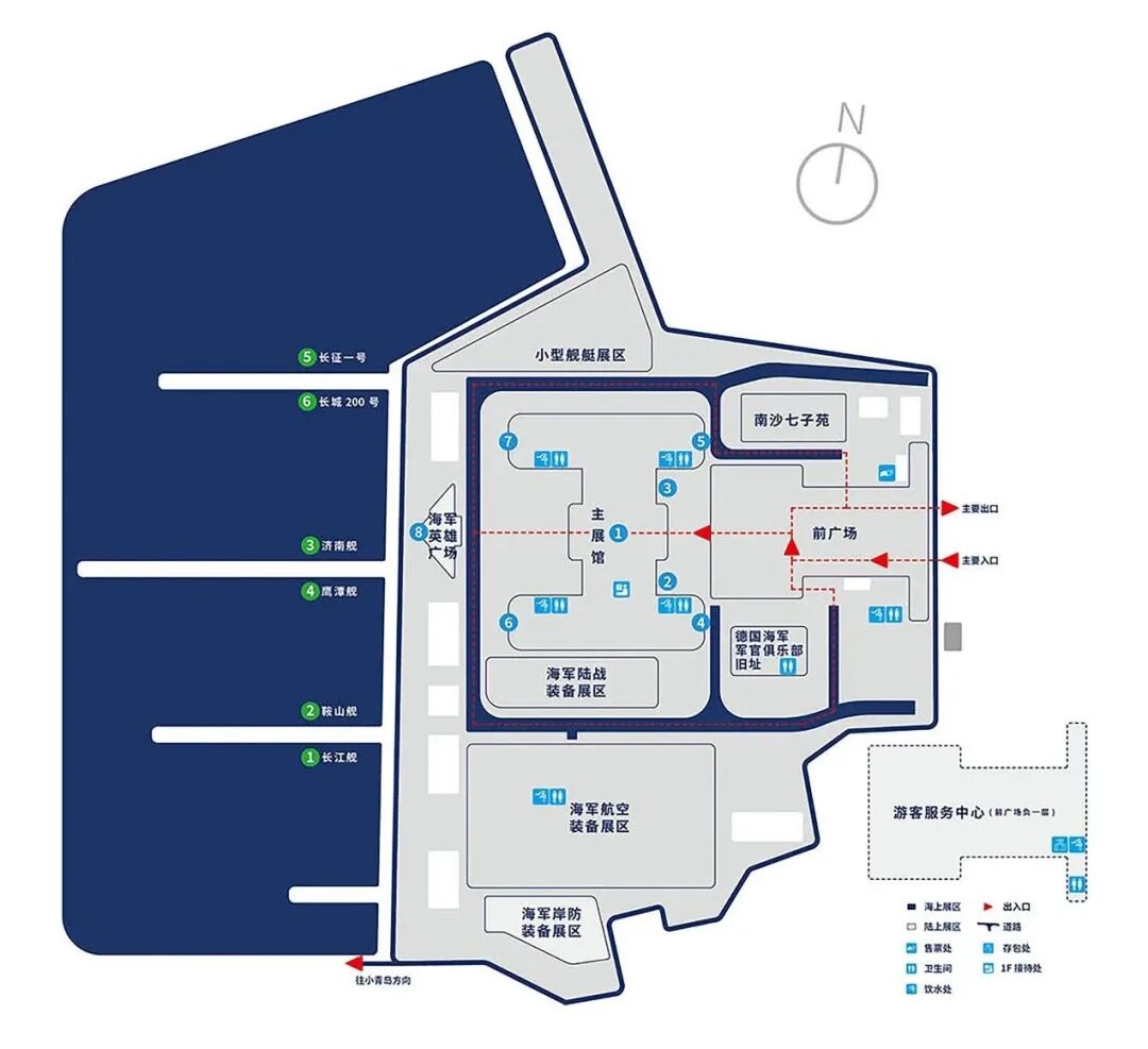 溫馨提示:海軍博物館全面保障軍人合法權益,現役軍人、退役軍人、軍隊文職人員、武警、消防救援人員、軍屬(現役軍人父母、配偶、子女)及遺屬,可持本人相關身份有效證件現場到“對軍票務服務窗口”兌換當日門票,同時依法優先,可從綠色通道快速入館。
