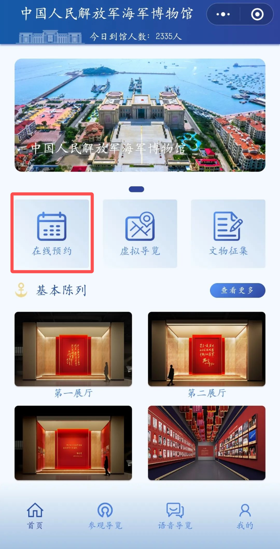 預約方式一:第一步打開微信小程序,第二步搜索“海軍博物館”,第三步點擊“在線預約”。