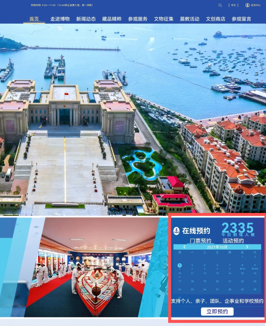 一、加強常態化疫情防控要求,我館嚴格落實“限流、預約、錯峰”要求,每日分4個時間段預約入館(9:00-11:00,11:00-13:00,13:00-15:00,15:00-16:00),觀眾來館前需提前通過海軍博物館官方預約渠道實名分時預約,請嚴格按照預約時段到館參觀。