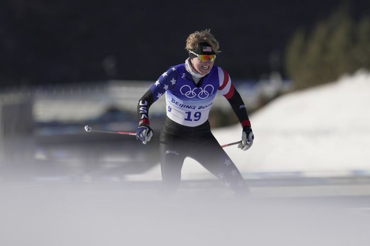 2月8日,美國選手漢娜·霍爾沃森在北京冬奧會越野滑雪女子個(gè)人短距離(自由技術(shù))資格賽中。新華社記者胡虎虎攝