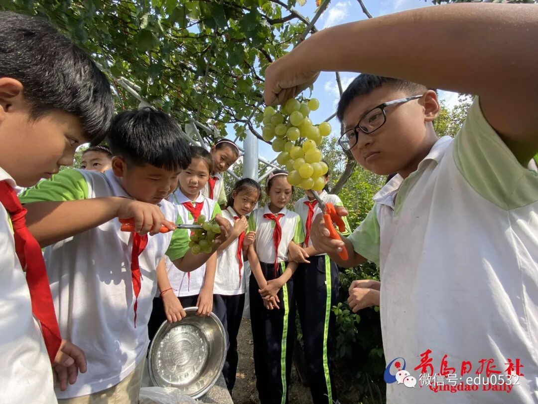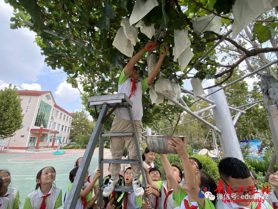 大澤山的葡萄熟了,平度大澤山鎮大澤山小學的孩子們樂了。