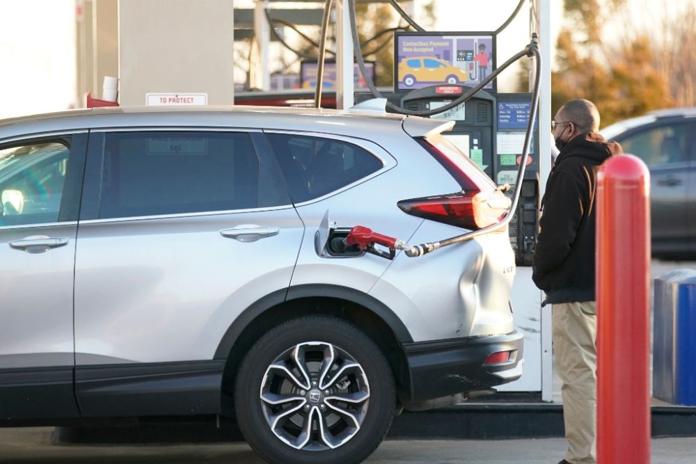 2月10日,一名男子在美國華盛頓的加油站給汽車加油。(新華社發,沈霆攝)