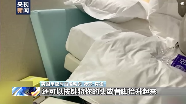 美國單板滑雪運動員 特莎·莫德:智能床可以像海洋的波浪一樣(變化),超級酷。遙控器上有好多模式,你可以按“零重力”模式,還可以按鍵將你的頭或者腳抬升起來,非常高科技,特別酷。