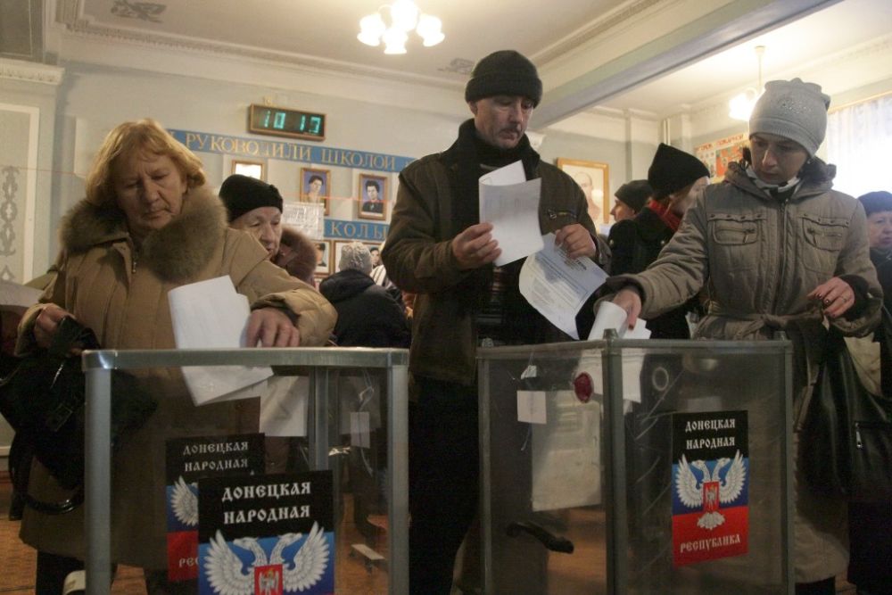 2014年11月2日,烏克蘭頓涅茨克的選民在投票站投票。據俄羅斯媒體報道,烏克蘭東部民間武裝2日在由其控制的“頓涅茨克人民共和國”和“盧甘斯克人民共和國”舉行領導人和議會選舉。(新華社發,葉爾莫琴科攝)