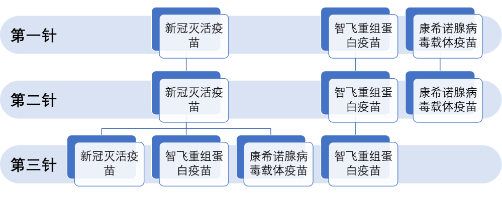 可選擇重組蛋白疫苗(智飛龍科馬)或腺病毒載體疫苗(康希諾)中的一種。