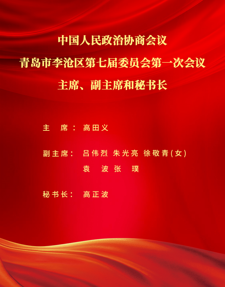2月25日下午,中國(guó)人民政治協(xié)商會(huì)議青島市李滄區(qū)第七屆委員會(huì)第一次會(huì)議勝利閉幕。大會(huì)選舉高田義為政協(xié)李滄區(qū)第七屆委員會(huì)主席。