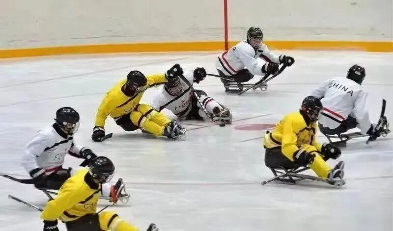 冰球賽事素有 “勇敢者游戲”之稱,是一個強對抗項目。一群“蒙面勇士”驅(qū)動鋼架冰橇車在冰面上飛馳,激烈拼搶。由于攻防節(jié)奏轉(zhuǎn)換極快,讓冰球比賽極具觀賞性。2015年,北京冬奧會、冬殘奧會申辦成功后,我國殘奧冰球項目從零起步。