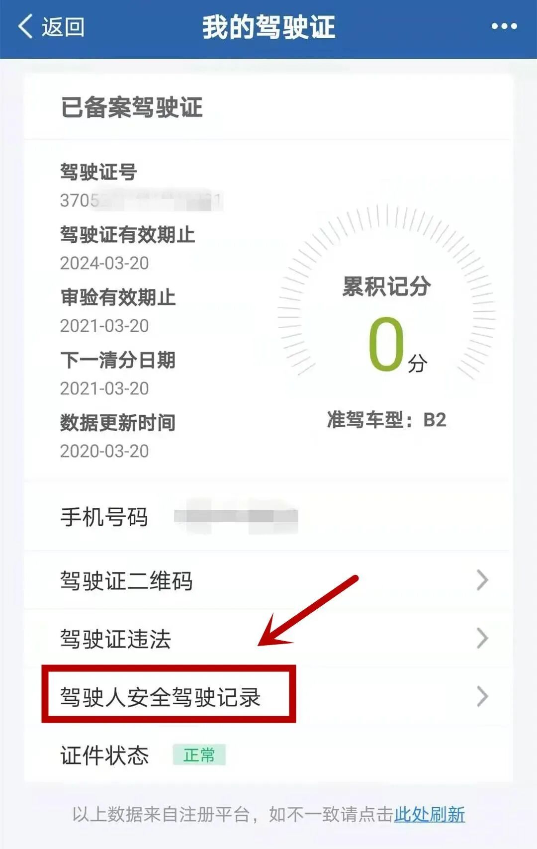 第二步:點(diǎn)擊“駕駛?cè)税踩{駛記錄”