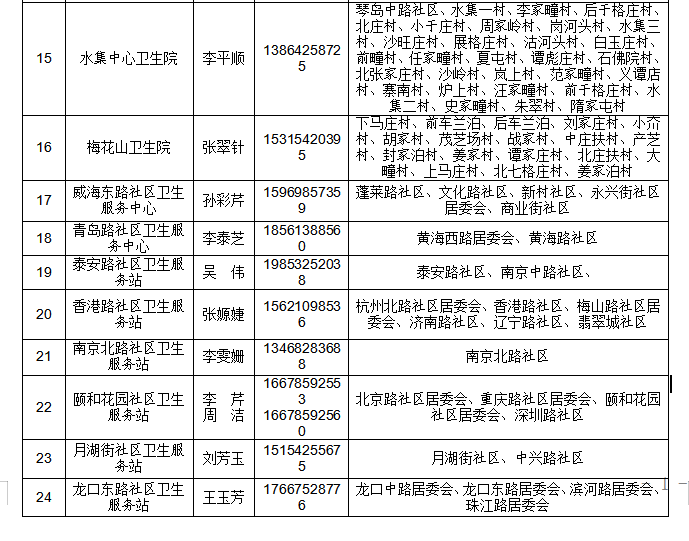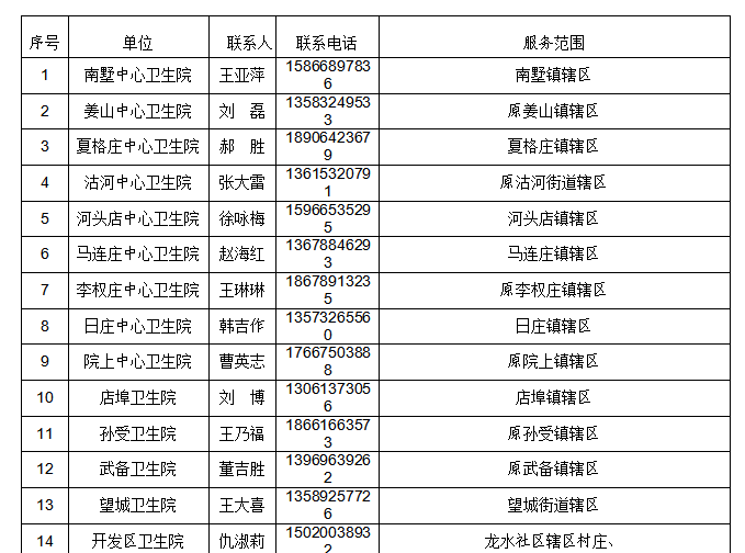 萊西市基層醫(yī)療機(jī)構(gòu)醫(yī)療服務(wù)工作聯(lián)系人