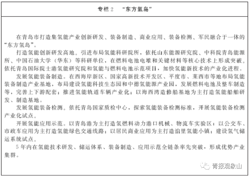 其中,構筑兩大高地,就是要打造“中國氫谷”和“東方氫島”,將青島發展成為氫能軌道車輛及船舶研發制造、氫能港口機械及物流應用、氫能熱電聯供及固定式、分布式電源研發應用基地。