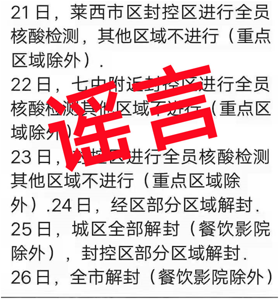 請廣大市民不信謠!不傳謠!3月21日,經市網信部門監測,發現有網民在網上傳播我市封控區核酸檢測及城區解封等信息。經核實,該信息不屬實,公安部門已經依法開展調查。