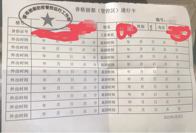 (2)如符合,以香格麗都(管控區)業主李先生為例,聯系物業后至門衛處即可根據要求辦理通行卡,根據小區防控要求明確通行卡使用。