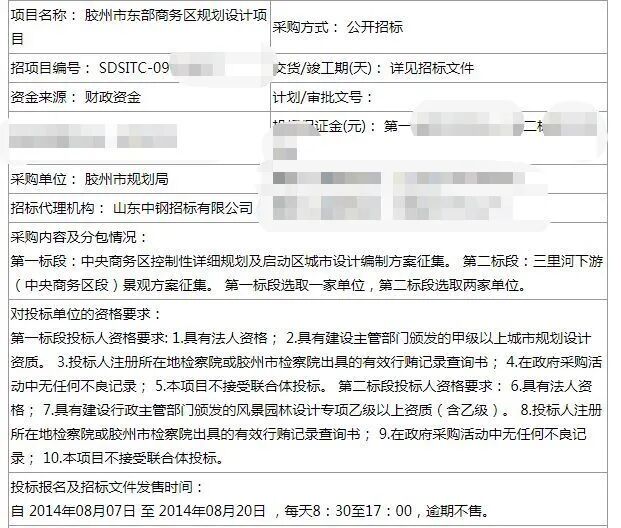 圖 | 《膠州市東部商務區規劃設計項目》公開招標書