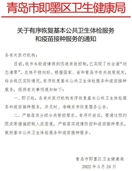即墨:有序恢復基本公共衛生體檢服務和疫苗接種服務