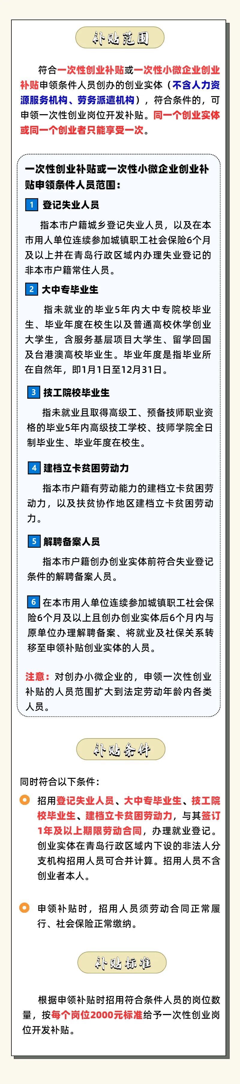 你提供崗位,我發放補貼!2000元/人,上不封頂! 2022-04-01 15:19 青島人社 0 全市疫情已經穩住 那么接下來我們要干什么? 當然是做好疫情防控的同時 開足馬力發展經濟,保障民生啊 在此人社補貼也來添磚加瓦 今天再給大家介紹一項補貼一次性創業崗位開發補貼↓ ↓ ↓ 責任編輯:楊海濤