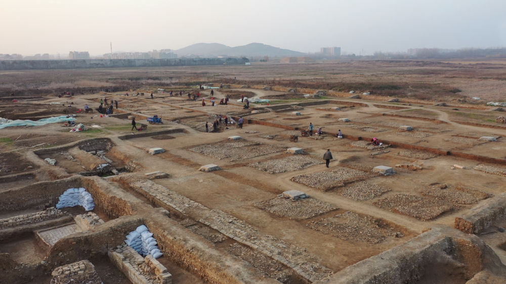 明中都遺址考古現(xiàn)場前朝宮殿區(qū)域俯瞰圖。(明中都遺址公園管理處供圖)