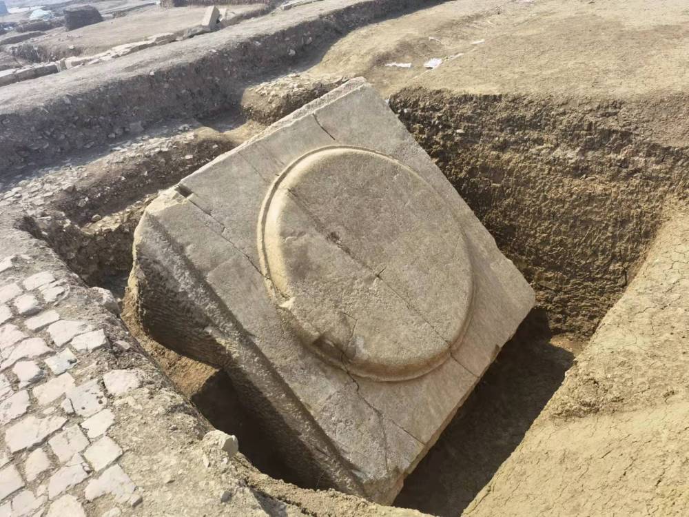 明中都遺址考古現(xiàn)場發(fā)掘出的巨型石礎(chǔ)。(明中都遺址公園管理處供圖)