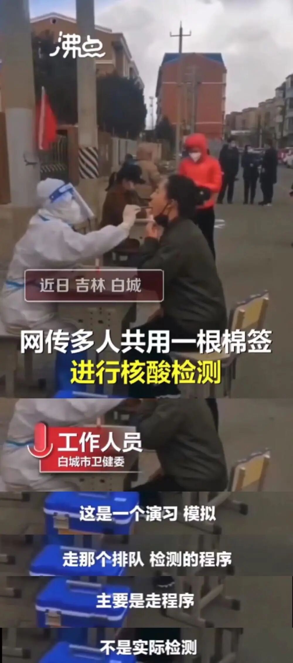 進一步的核實發現,該視頻拍攝地不是上海,而是吉林白城。根據沸點視頻報道,吉林省白城市衛健委工作人員已于3月31日就相關視頻進行解釋稱,這是當地在進行核酸檢測演習,主要演習當地的核酸檢測排隊程序,并沒有實際檢測。