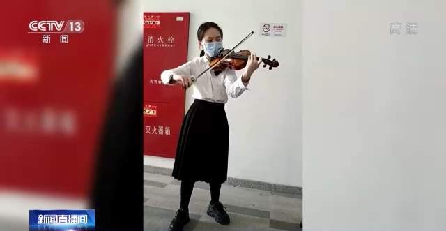近日,一位名叫劉軒伶的女孩在工作人員的協助下,在上海一家方艙醫院里順利完成了小提琴線上藝考。