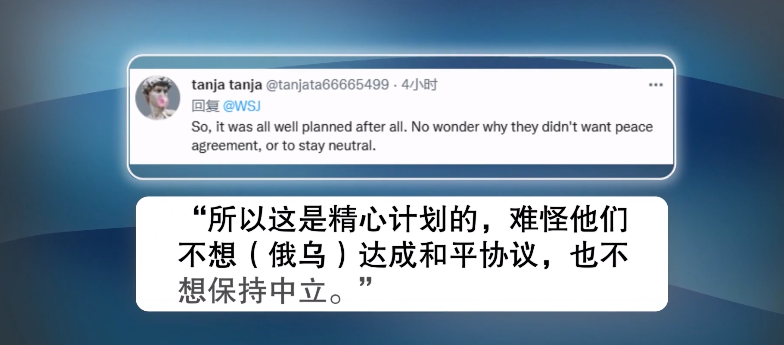 4月6日,五角大樓發(fā)言人約翰·柯比曾表示: “自去年秋天以來,這一小部分烏克蘭士兵,早在危機(jī)之前就來到了美國(guó),一直在美國(guó)接受軍事教育和專業(yè)軍事訓(xùn)練。” 對(duì)此,有網(wǎng)友評(píng)論道:“所以這是精心計(jì)劃的,難怪他們不想(俄烏)達(dá)成和平協(xié)議,也不想保持中立。”