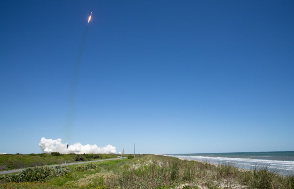 4月8日,“龍”飛船搭乘“獵鷹9”號(hào)火箭從美國(guó)佛羅里達(dá)州肯尼迪航天中心發(fā)射升空。新華社發(fā)(美國(guó)航天局供圖)
