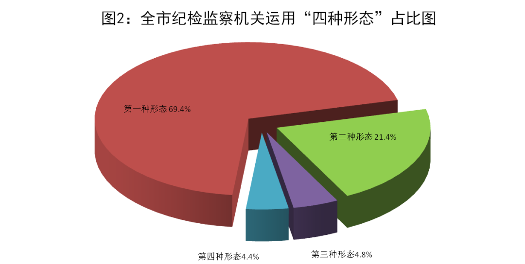 2022年第一季度,全市紀檢監察機關運用“四種形態”批評教育幫助和處理共2487人次。其中,運用第一種形態批評教育幫助1726人次,占總人次的69.4%;運用第二種形態處理531人次,占21.4%;運用第三種形態處理119人次,占4.8%;運用第四種形態處理111人次,占4.4%。