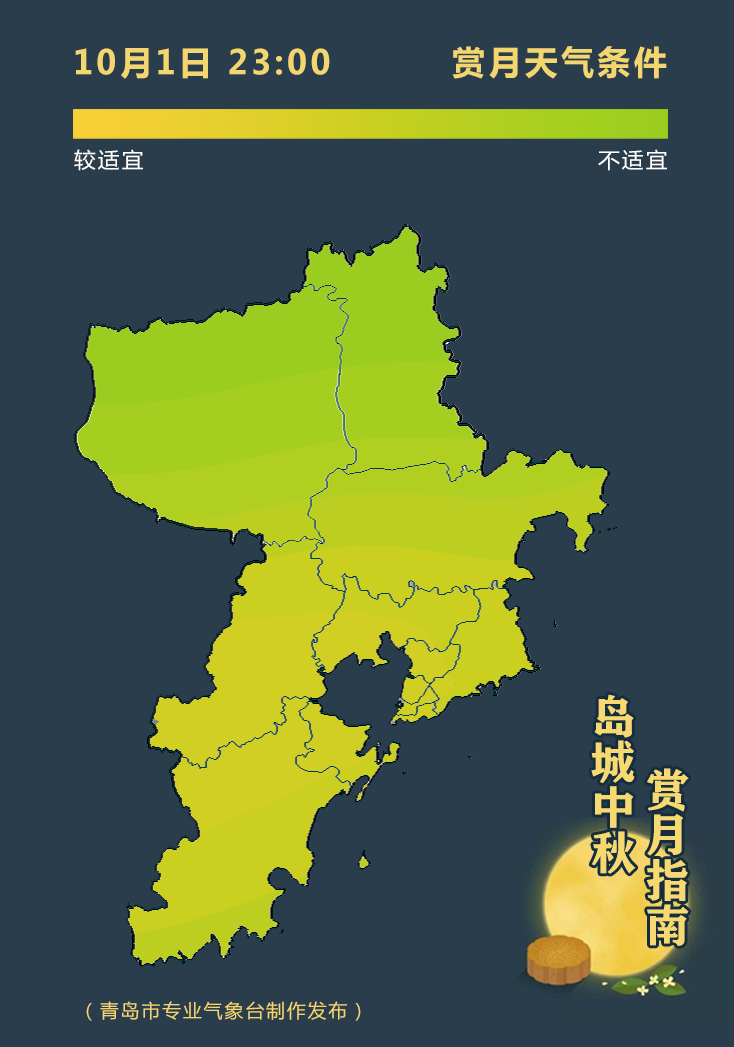 賞月是中秋不可錯過的環節,今年的中秋之夜(10月1日晚,10月2日凌晨),天上的云量如何,天氣條件是否適合賞月呢?一起來get“島城中秋之夜賞月指南”吧!