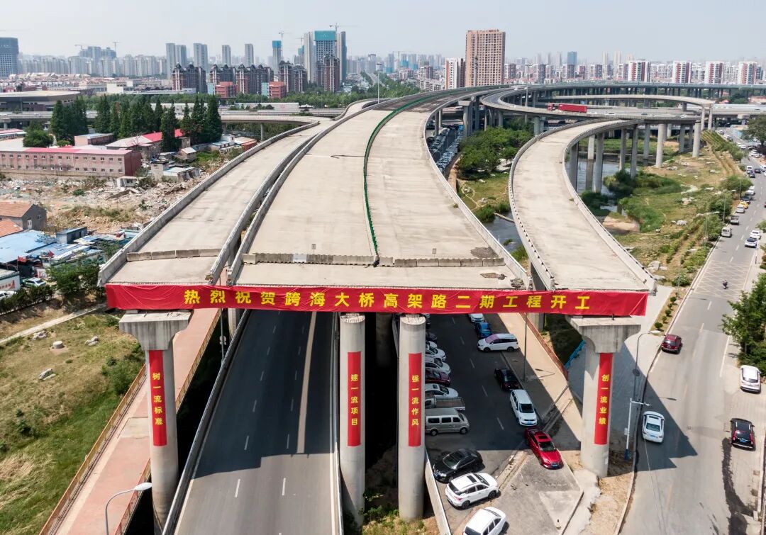 5月22日上午,青島市重點(diǎn)市政設(shè)施暨張村河片區(qū)重點(diǎn)項(xiàng)目集中開(kāi)工儀式在跨海大橋高架路二期工程施工現(xiàn)場(chǎng)舉行,意味著這段“沉睡”十余年的大橋,迎來(lái)“重生”。