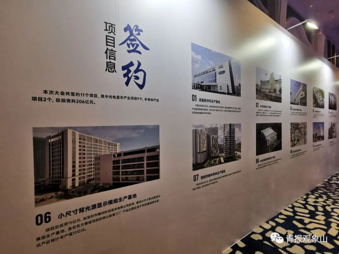 大會舉行了青島西海岸新區顯示產業重點項目簽約儀式,液晶新材料生產基地、3D玻璃蓋板生產基地、5G通信半導體器件生產基地、UTG超薄柔性蓋板生產基地等總投資206億元的11個重點項目簽約落地。