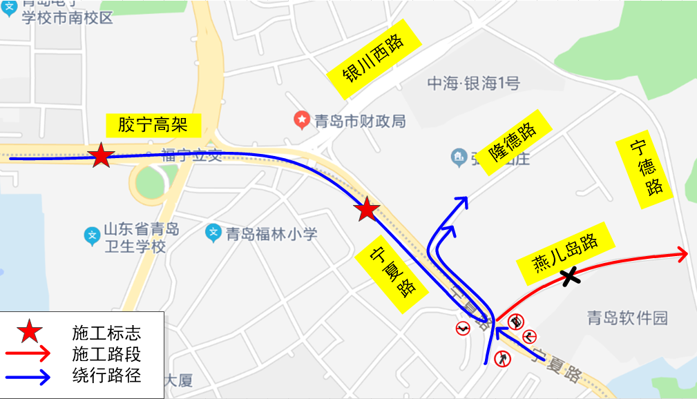 為期約一個月!7月6日起,市南區燕兒島路(寧夏路至寧德路)路段南向北施工