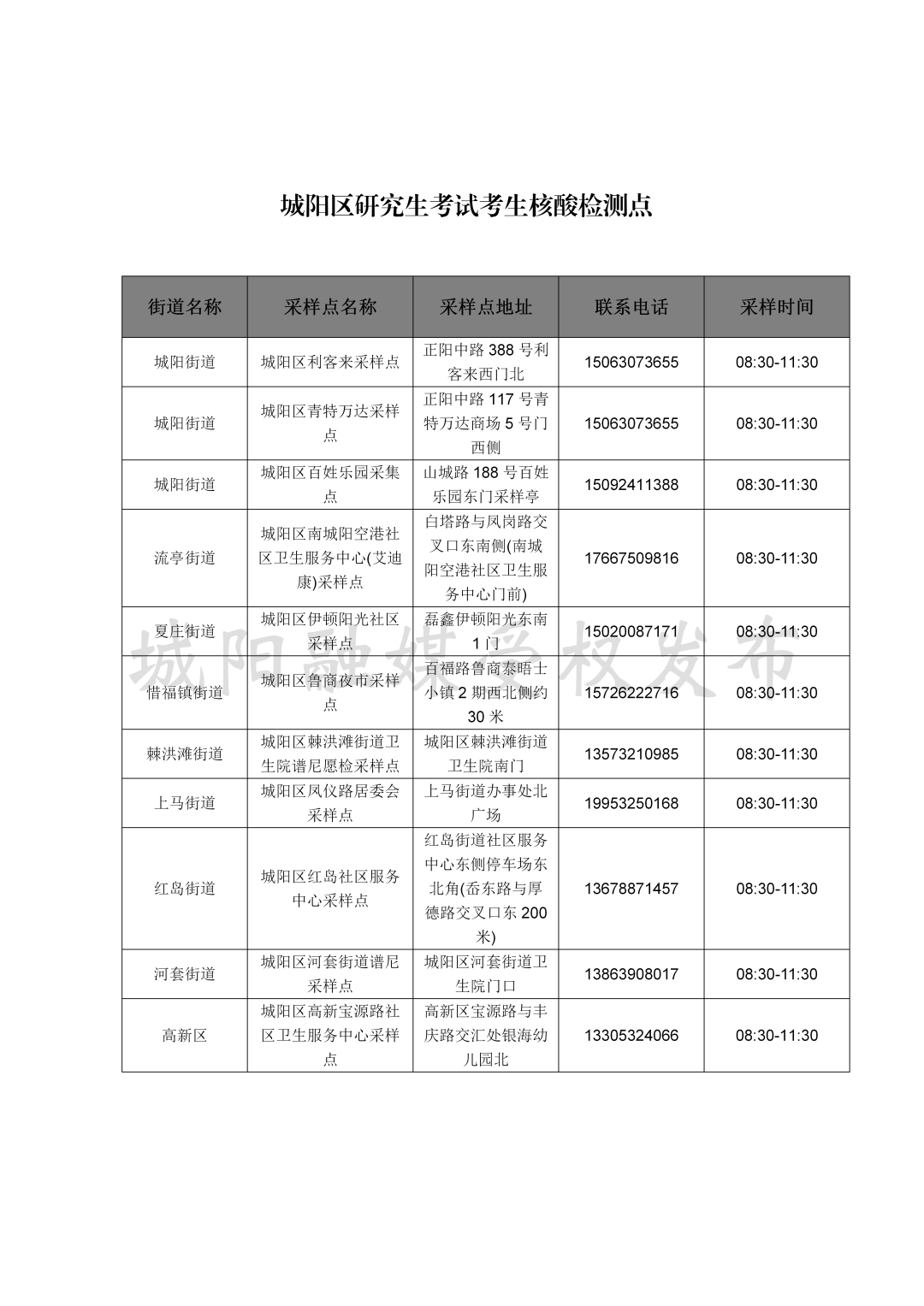 12月21日,城陽區新型冠狀病毒肺炎疫情防控指揮部發布最新的2023年研究生考試(初試)城陽區核酸檢測點位。詳情如下:
