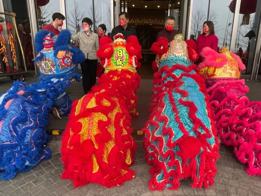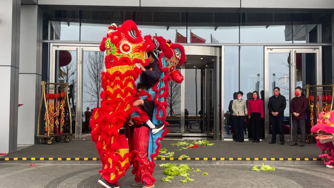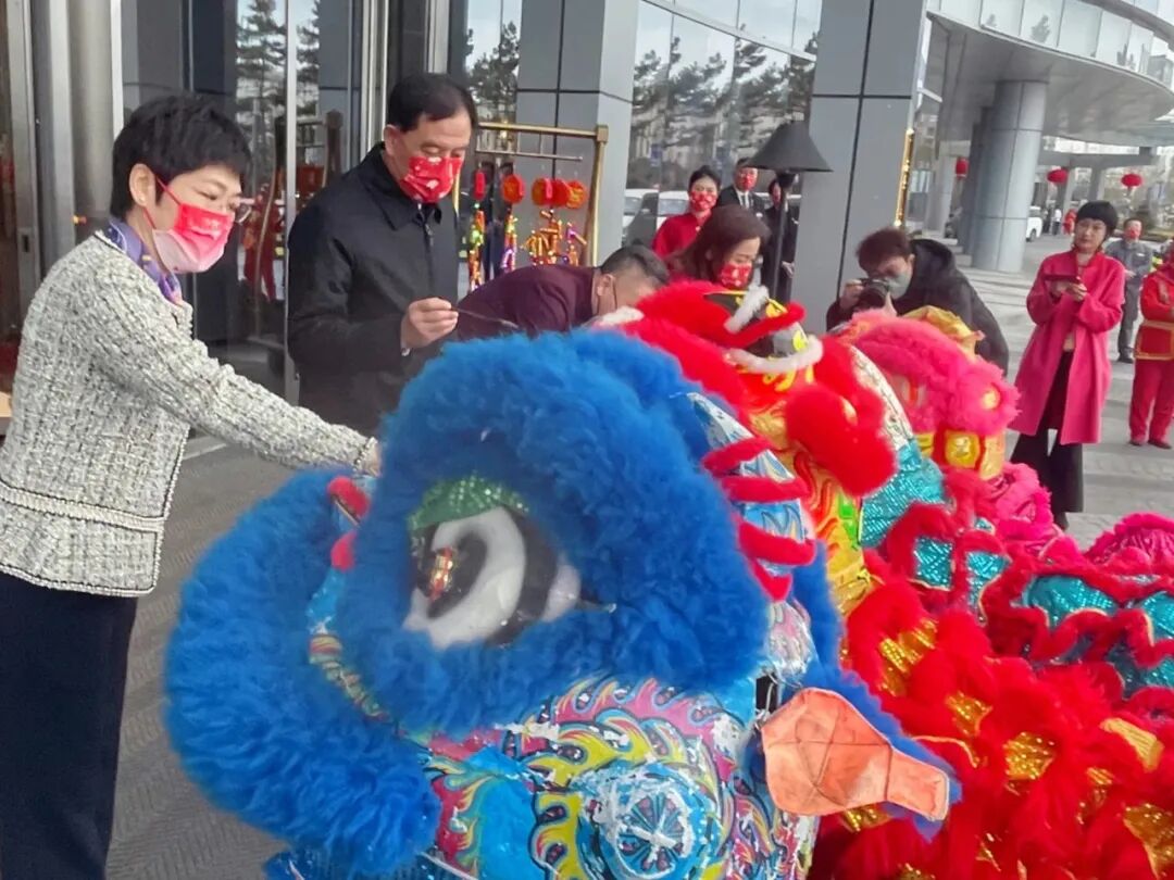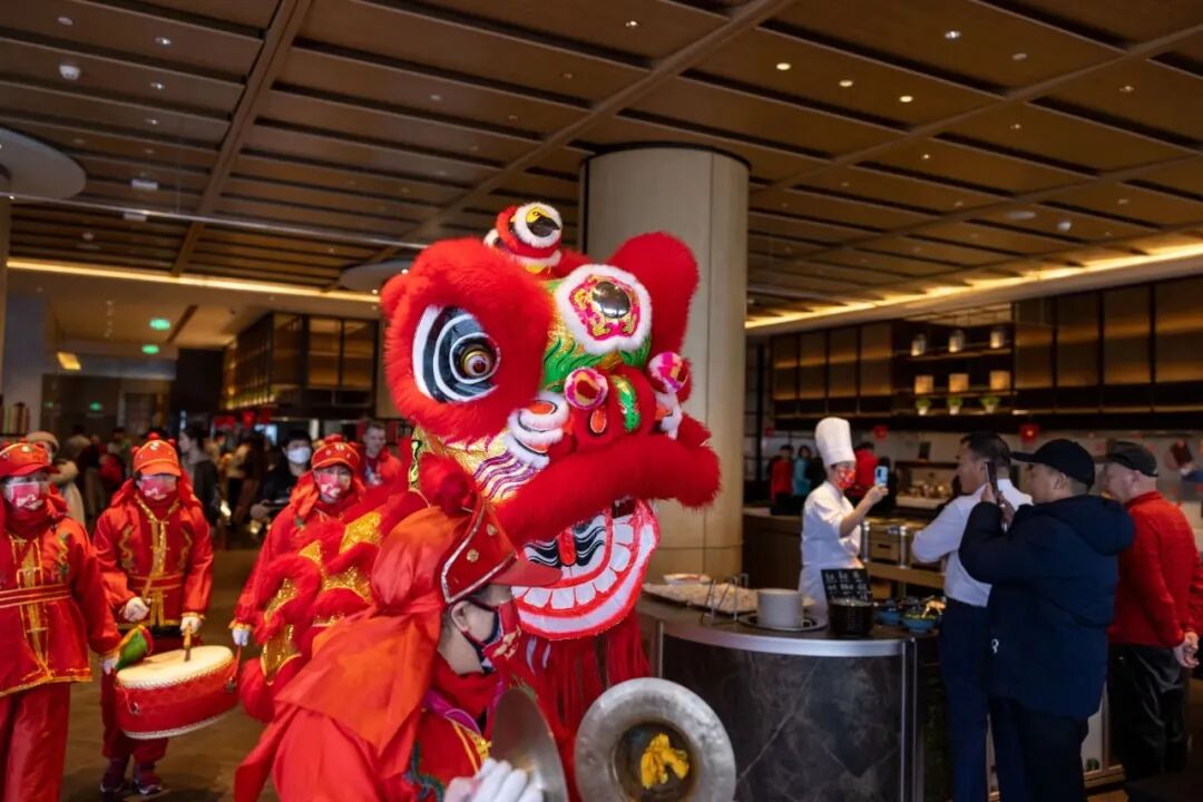 1月22日,色彩絢爛、英姿勃發、活靈活現的雄獅,在青島海天大酒店迎來了兔年春節的第一縷陽光,開啟了新春納福采青儀式。