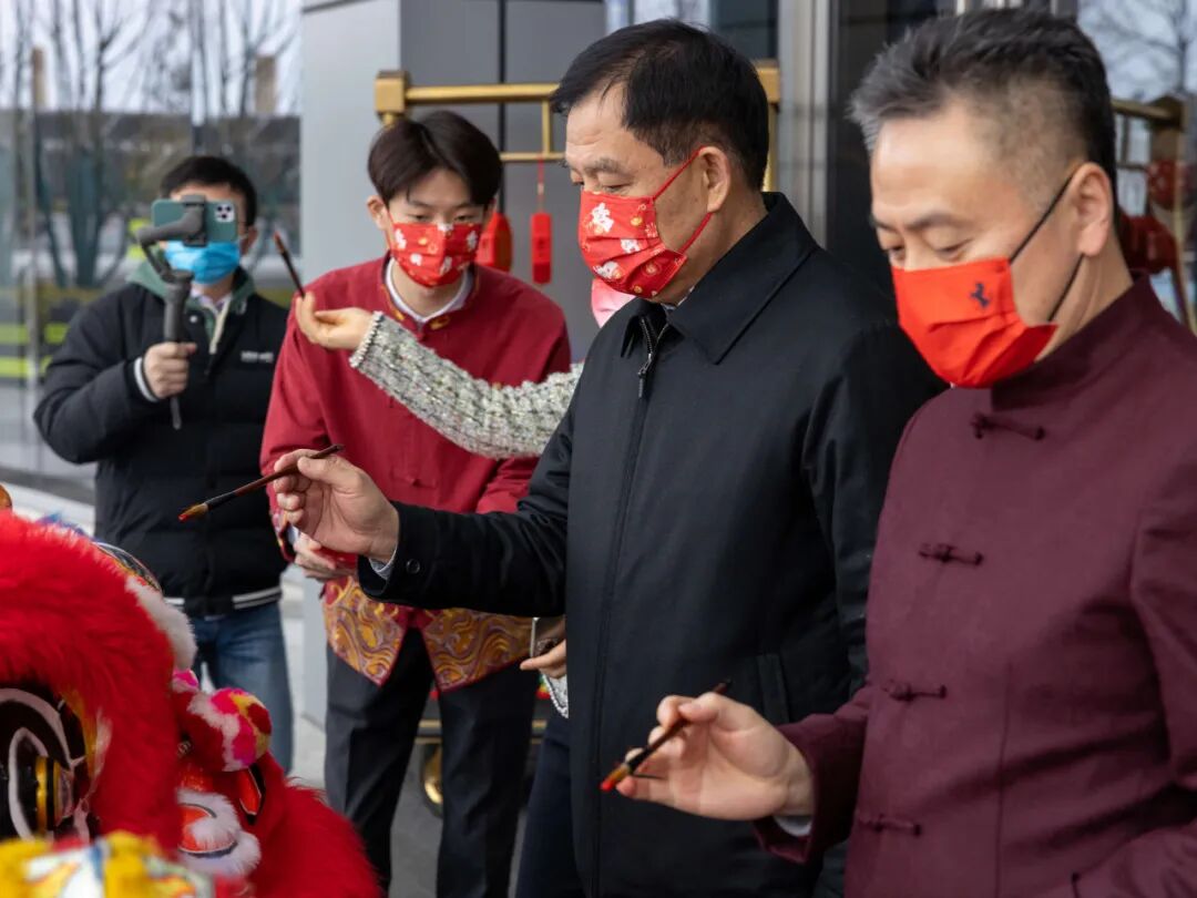 青島國信集團、國信會展酒店發展有限公司及青島海天大酒店管理層領導為雄獅點睛。