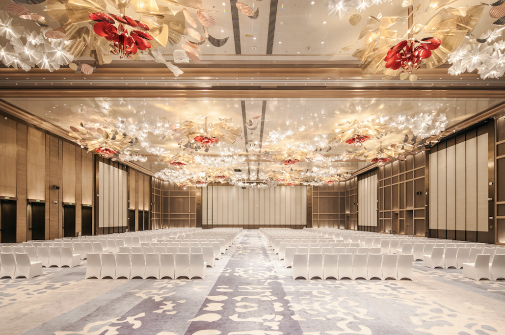 酒店擁有2600平方米的大宴會廳與一線觀海會議廳廊,可承接國際首腦會議、部長級會議等高級別會議;更含有1988全日餐廳、宴海閣中餐廳、三沙日餐廳、海天壹號西餐廳、地平線酒廊與一個行政酒廊,邀您一共品味青島的城市味道與情調。
