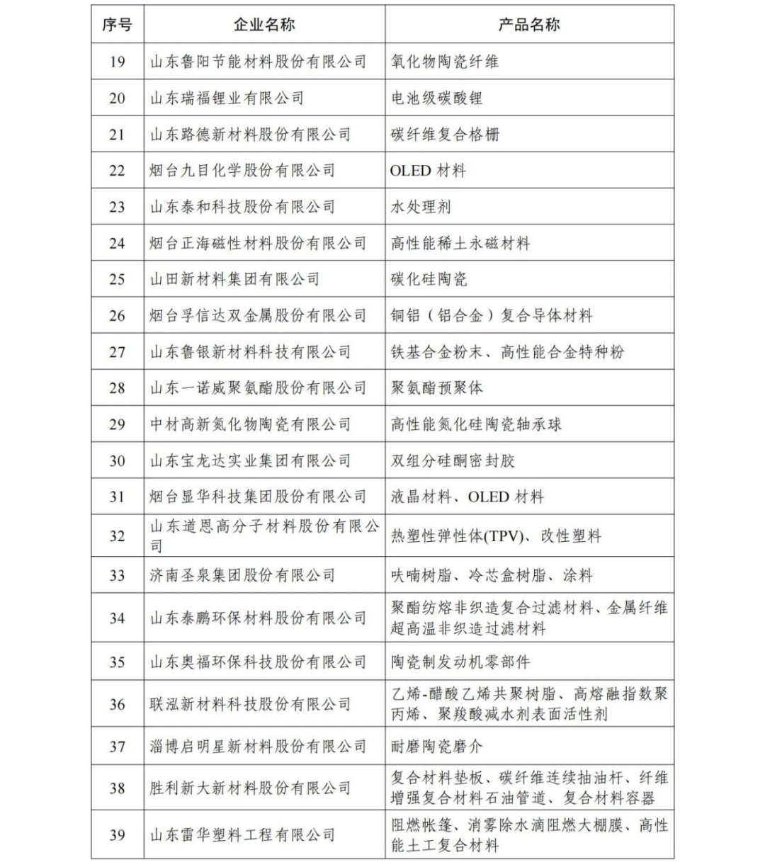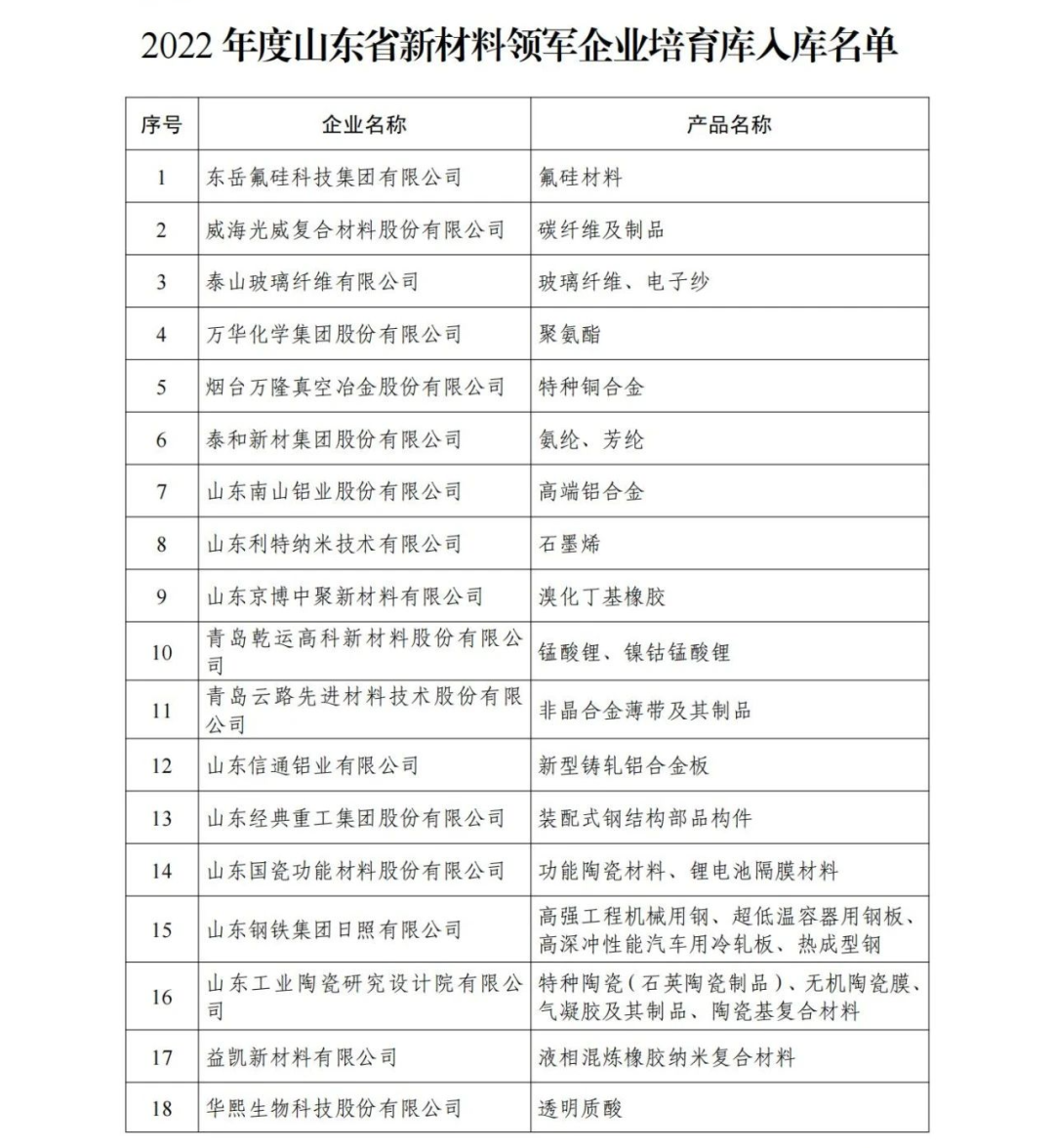關(guān)于公布2022年度山東省新材料領(lǐng)軍企業(yè)