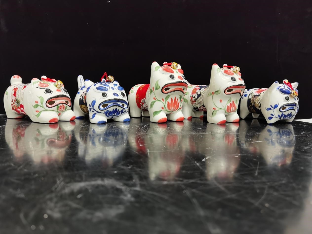 首先是原料的選擇,最初,康健團隊選擇了臨近的淄博瓷泥,但是燒制后的瓷虎整體不夠鮮亮。為了保證瓷虎的品質(zhì),團隊經(jīng)過反復(fù)考察,在著名的“瓷都”景德鎮(zhèn)找到了所需瓷泥和釉料。其次,材質(zhì)變了,彩繪方式也必須改變。經(jīng)過各種試驗,康健團隊驚喜地發(fā)現(xiàn)采用釉下彩的方式,經(jīng)過1240℃高溫?zé)贫傻拇山谢⑸术r亮且不易褪色。