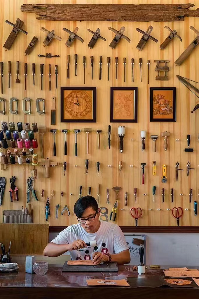 經過百余年四代技藝相傳,考工記創始人李魯鵬在畢業后返鄉創業,成立山東考工記非物質文化遺產保護有限公司,公司集百工百藝,保護、傳承、發展膠東非遺手造技藝,致力于傳承發展皮雕皮塑手藝,打造非遺消費新風尚。
