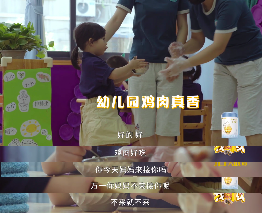 幼兒園里,姌姌一改在家時嬌氣的模樣,很快就和其他小朋友玩起游戲,吃飯也自己動手。