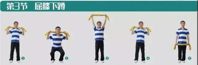 反復練習8次還原,老年人可根據個人情況適當調整練習次數,下蹲幅度。